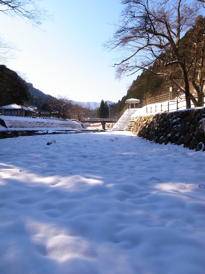 向かって左手奥の井戸はパイプが凍って水が出ない。まあ、いい。