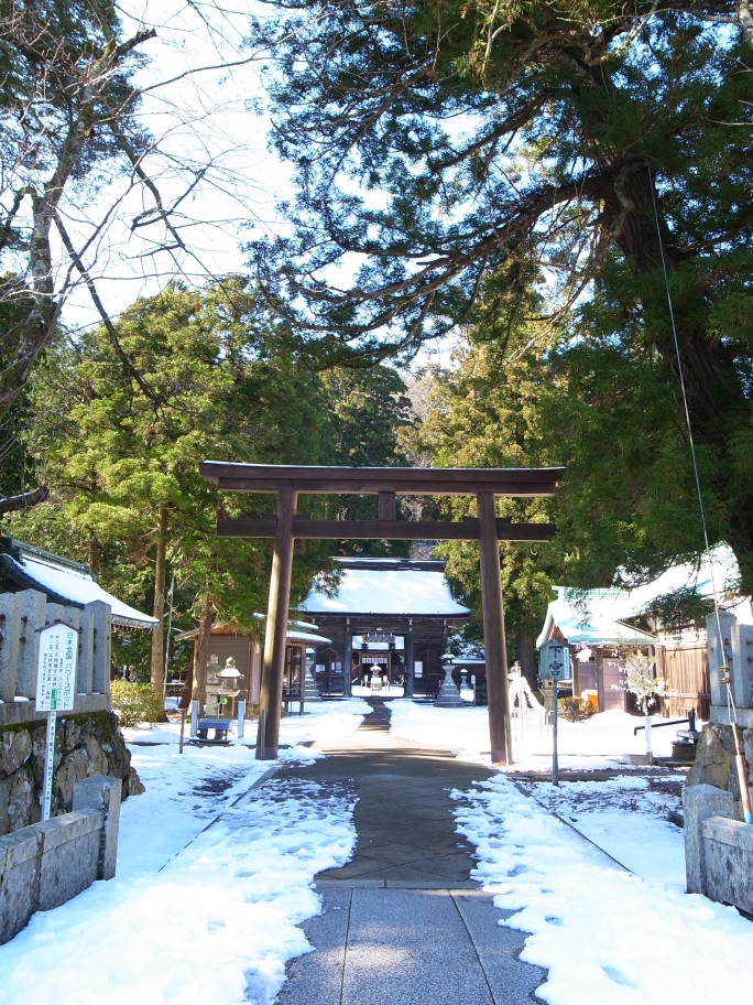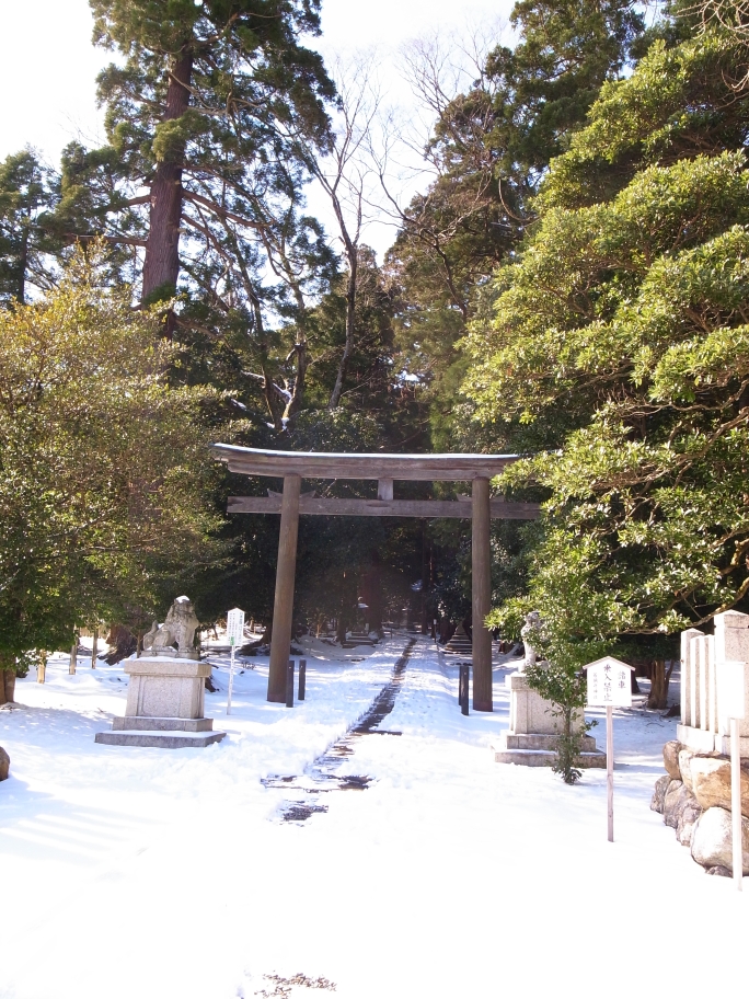 次に若狭彦神社お参り。参道は几帳面に50cm程の幅に雪がはかれている。