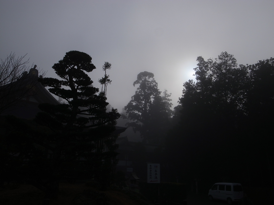 高度を増すに従って、霧が晴れてくる。中腹を過ぎて木々の間から地上を垣間見られるところまで来ると、霧が晴れたのではなく、雲海のように、地上の霧の上に抜けて来たことがわかる。「天」が近い。本質の世界を観るというのはこういうことなのだろう。自分の観るべき世界・宇宙のレイヤー、次元を見失わないようにしなければならない。ただ注意すべきは、このレイヤーの違いは優劣としての「次元が高い」・「次元が低い」ではないということだ。ともあれ、自分が観るべき次元・レイヤーはある。