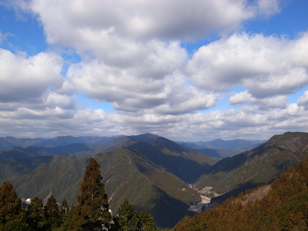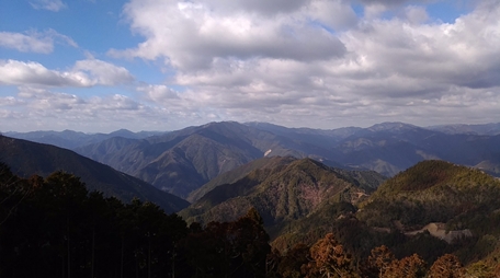 駐車場より龍神方面の眺め。熊野古道小辺路の果無峠なども見える。