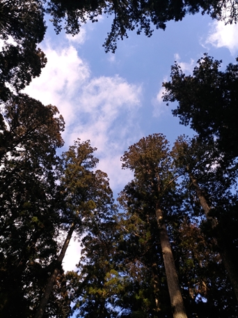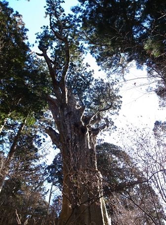 玉石社近くから、三本の杉がいつも以上に気になる。お参りし、三本の杉に抱かれる宝珠にお水を捧げる。