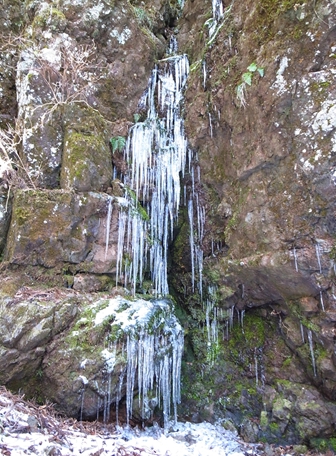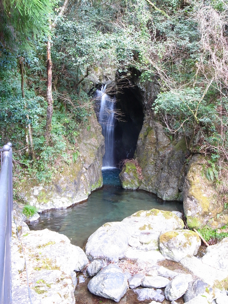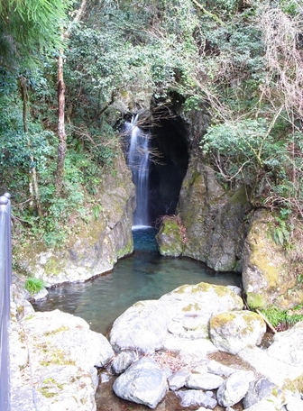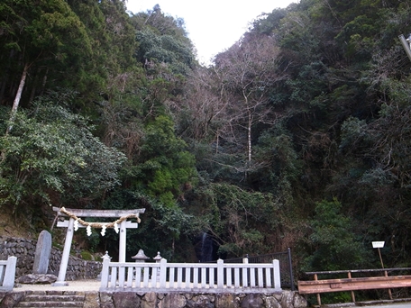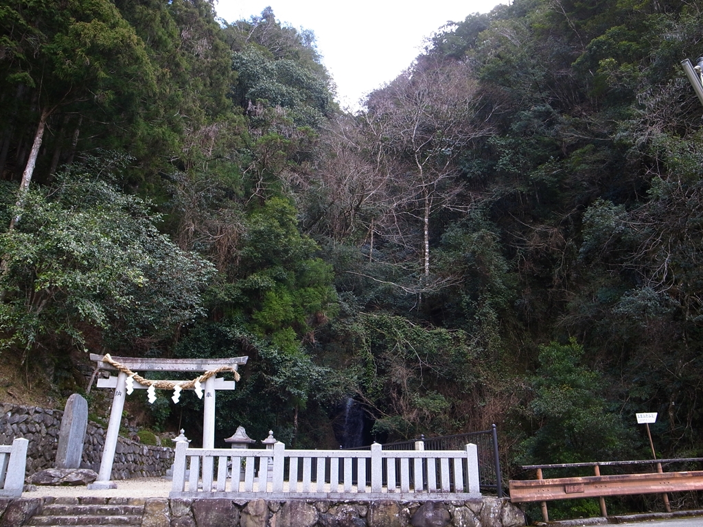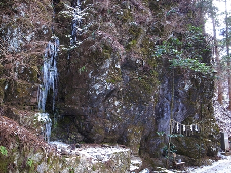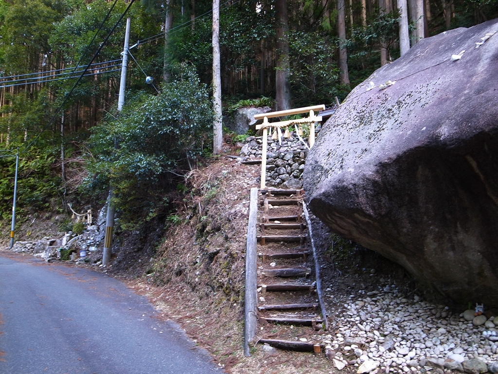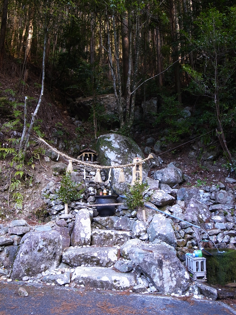 山道にしばらく進むと、巨岩の湧き水に龍神さんを祀っている小さな社がある。車を降りてお参りする。