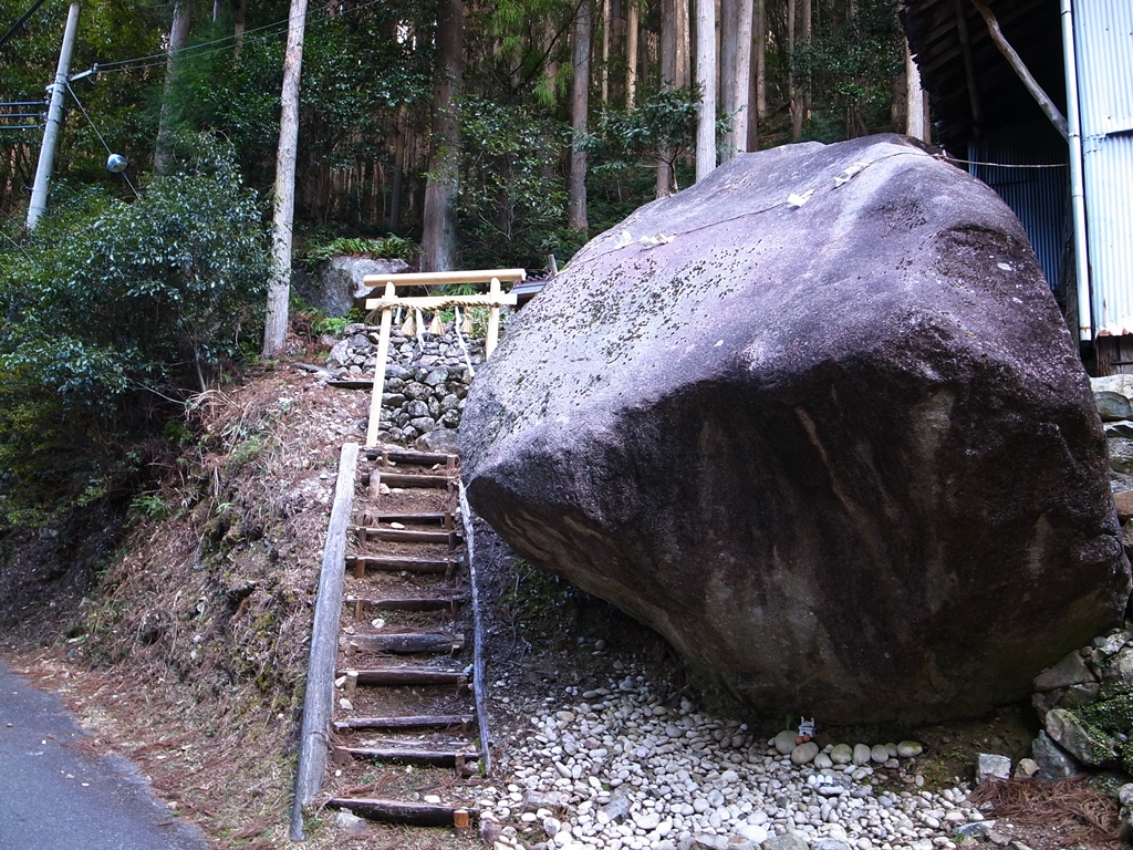 駐車場への道の途中にある白山社。巨大な磐座が座しており、ここも玉石社とおなじく社殿のない古代の信仰様式を残している。