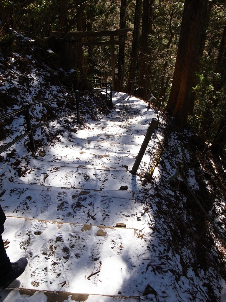 細い急な山道の参道を進む。この参道もいつもと違う感じ。どうもいつもと次元が違っているらしい。