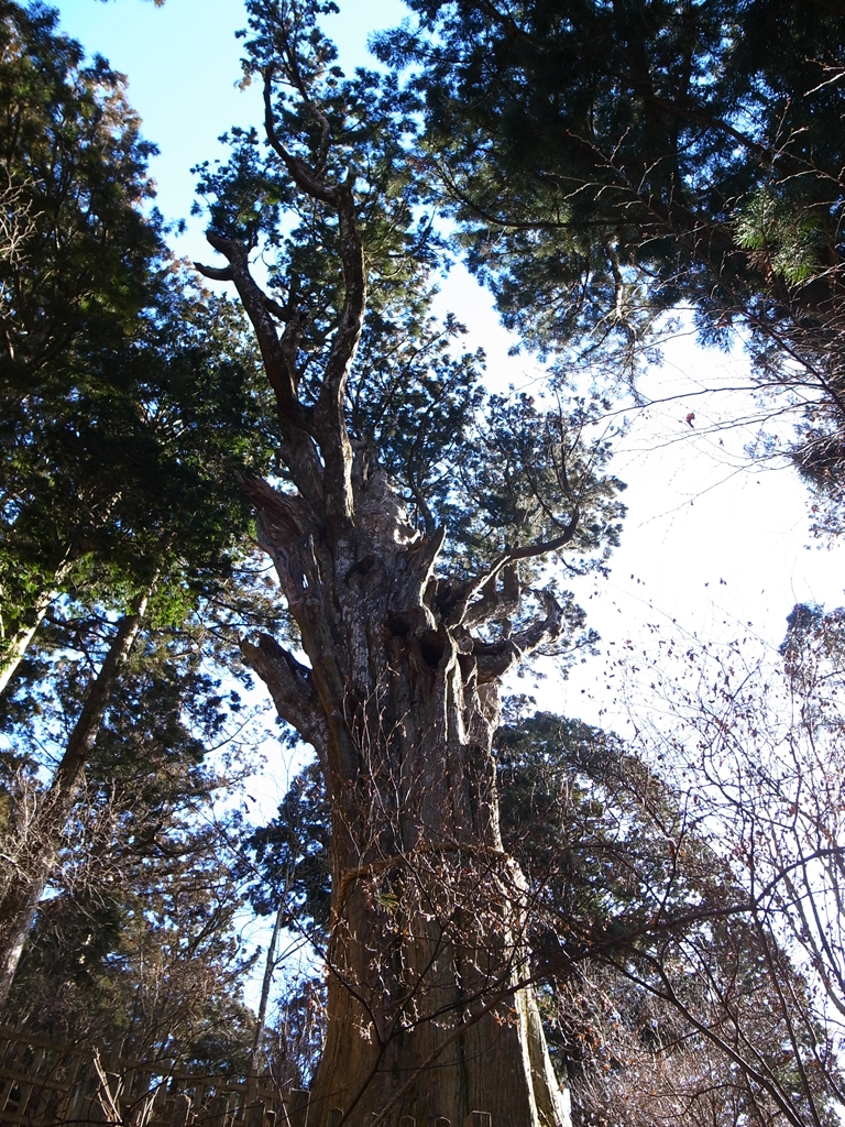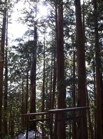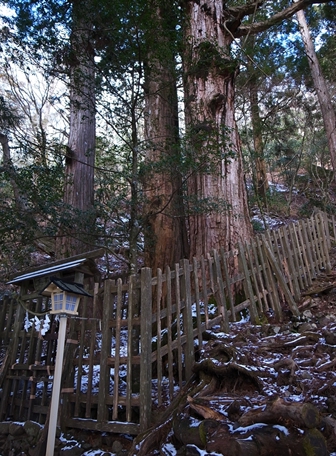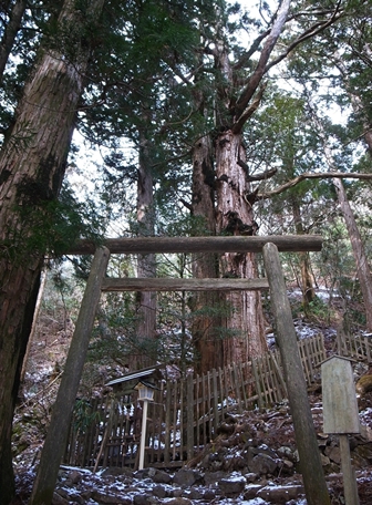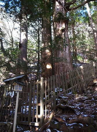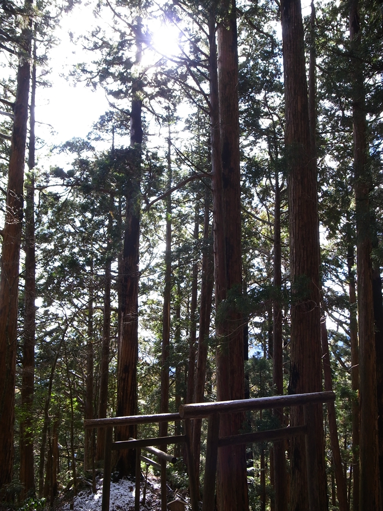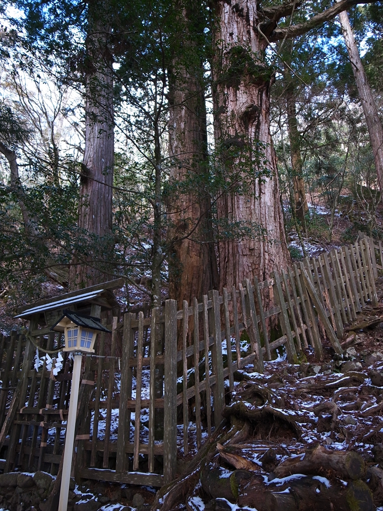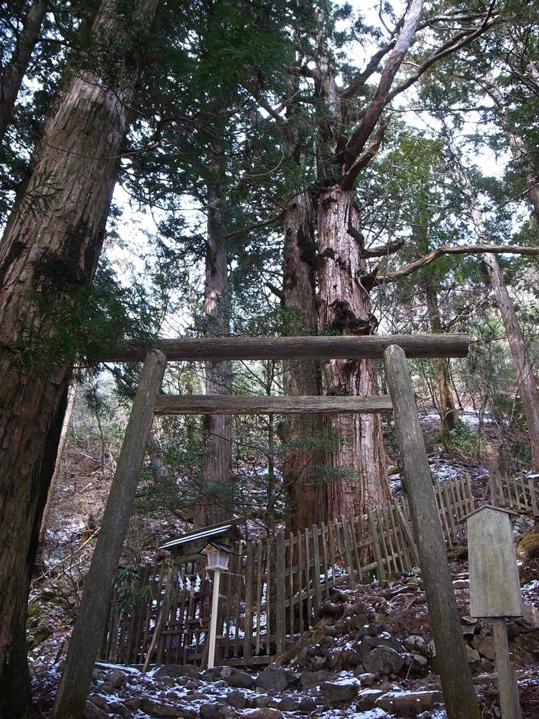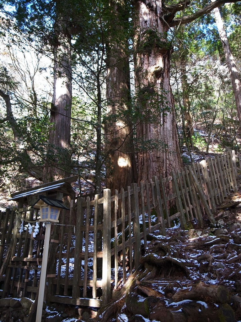 お参り終わって、しばし三本の杉と宝珠を眺めていると、不意に杉に陽が射す。やはり玉置は宝珠の山だ。