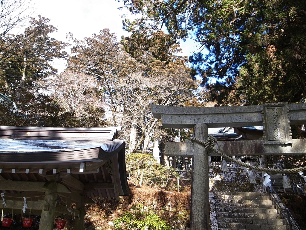 弓神楽を頂き、社務所横のお手洗いに寄り、奥の宮である玉石社へ向かう。