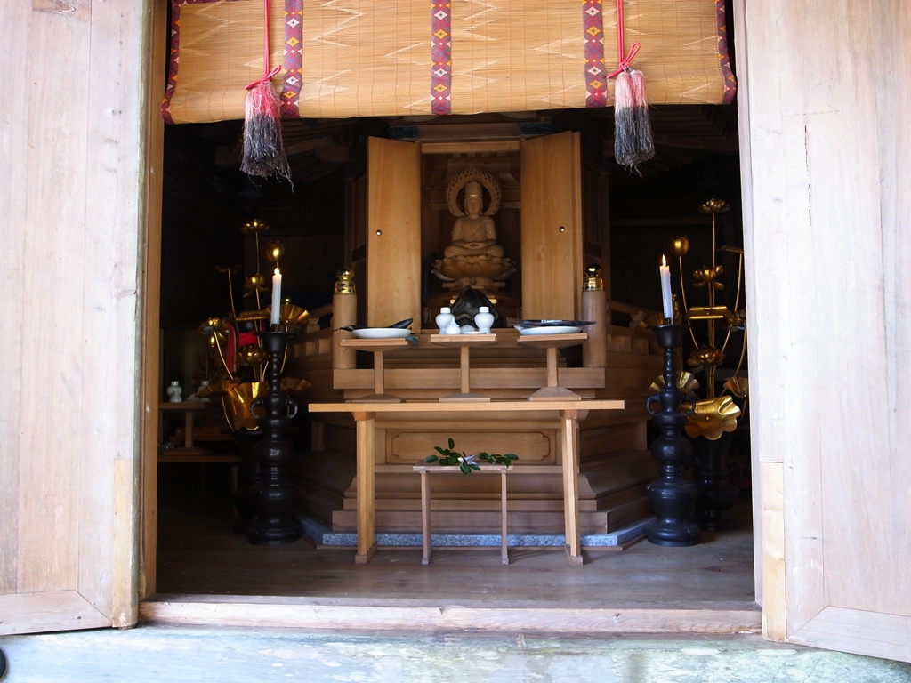 邪魔にならぬよう、そっと近づいて行くと、床几を勧められる。恐縮しつつも、参列させて頂く。 お祭りは終盤に差しかかっていたようで、程なく宮司様のご挨拶がある。このお祭りは、大日堂社内に背中合わせにお祀りされている金剛界大日如来と胎蔵界内日如来を年に一回転回し、1年ごとに金剛界大日・胎蔵界大日を交互に正面に向かせる「大日堂社転換祭」という神事だったようだ。毎年、古来の新年前日に当たる節分の日に、このお祭りが執り行われているらしい。今日は転換の瞬間は見ることができなかったが、奇しくもお祀りに参列させて頂くことができた。また、これまで何度もお参りしているが、大日堂社が御開扉されているのは初めて拝見でき、中の大日さんも今回初めて拝観・参拝することができた。来年はもうちょっと早めに着いて、是非お祭の最初から参列させて頂きたいと思う。