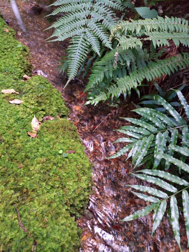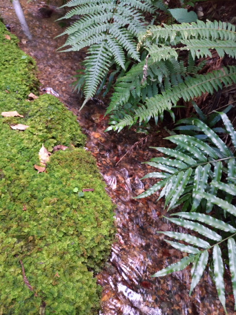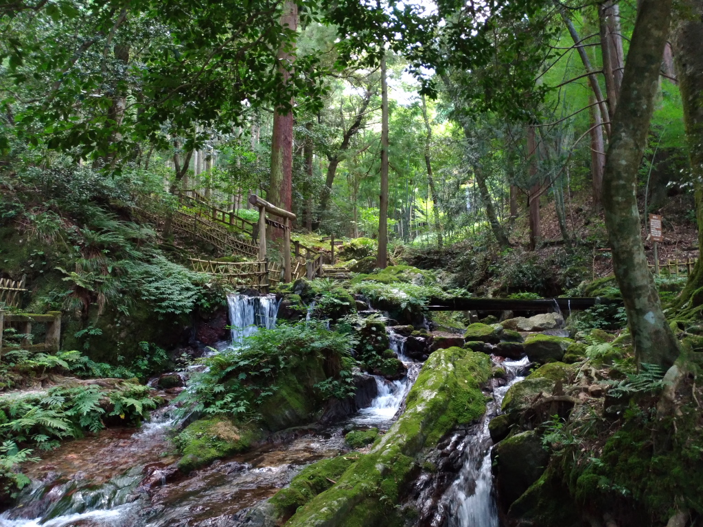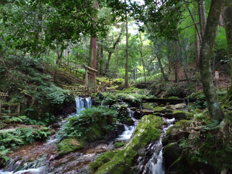 瓜割の滝への参道。今日は秋らしくからっとした空気なのだが、やはりここは水が豊かでみずみずしい。