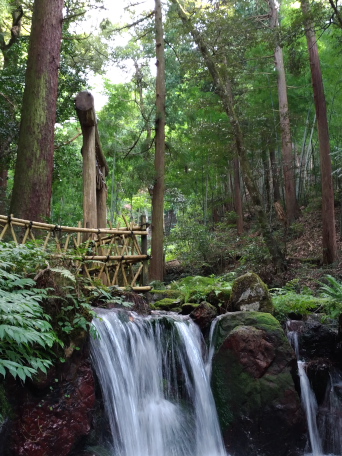 泉の正面より、瓜割の水の神様・十一面観音さんにお参り。今日はややいつもより右手、鳥居正面の辺りからお参りする。心経一巻、十一面・水天・龍神・白山大明神の各真言。諸仏・諸神に感謝をささげ、また同時に観想(心の中でありありと想い浮かべること)にて全身でたっぷりお水を頂く。
