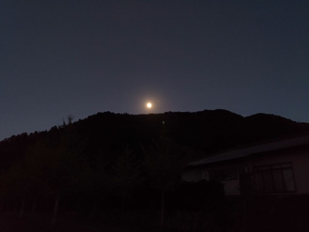京都への帰路、再び瓜割に立ち寄ると、空に明るい月が浮かんでいる。あと3日で満月だ。
