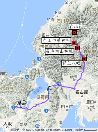 9月からの流れで、若狭から奈良、奈良から玉置・熊野・花の窟と水を繋いだので、伊勢は参拝は見送ったが、熊野・伊勢方面からの流れを受けて美濃側から白山を遥拝しようと思う。また、美濃馬場からの白山登拝の最前線である白山中居神社は、以前お参りに訪れた時は残雪が深く本殿に近づくことができなかったため、今回こそは白山中居神社にお参りしたいと思う。