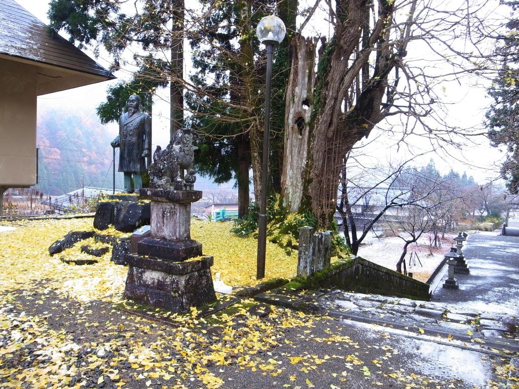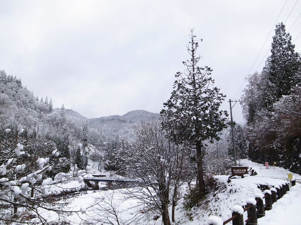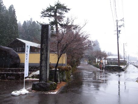 (写真をクリックすると大きなサイズで表示します。)白山長滝神社に到着。郡上市白鳥町に入ったあたりから雨がみぞれになる。