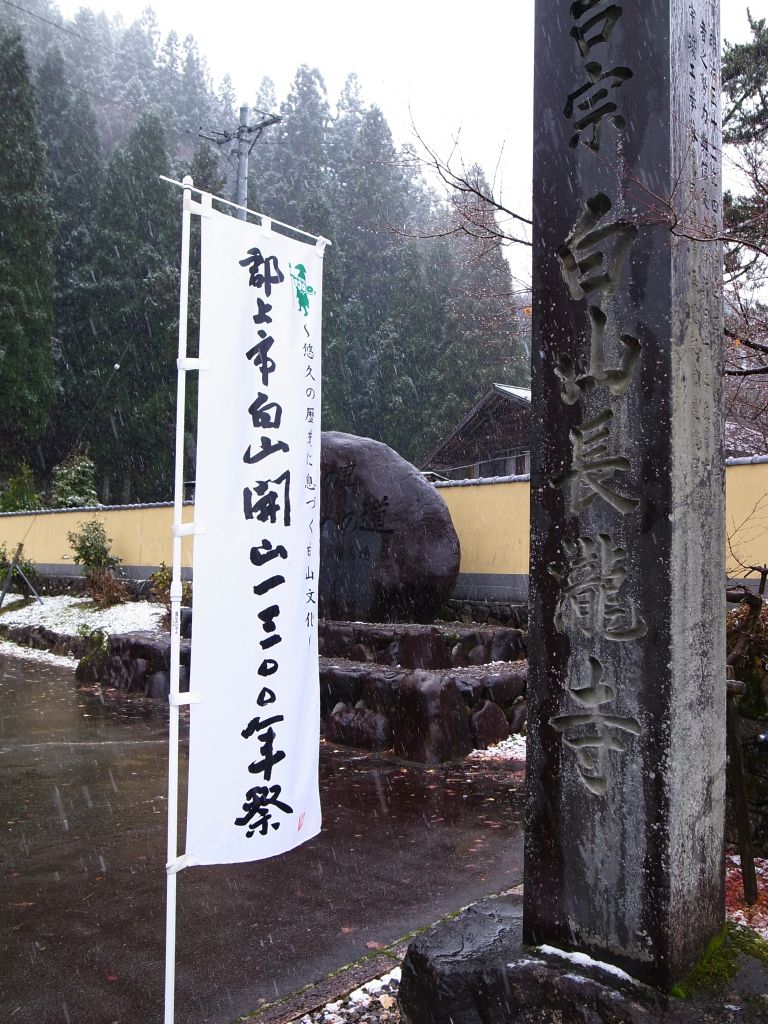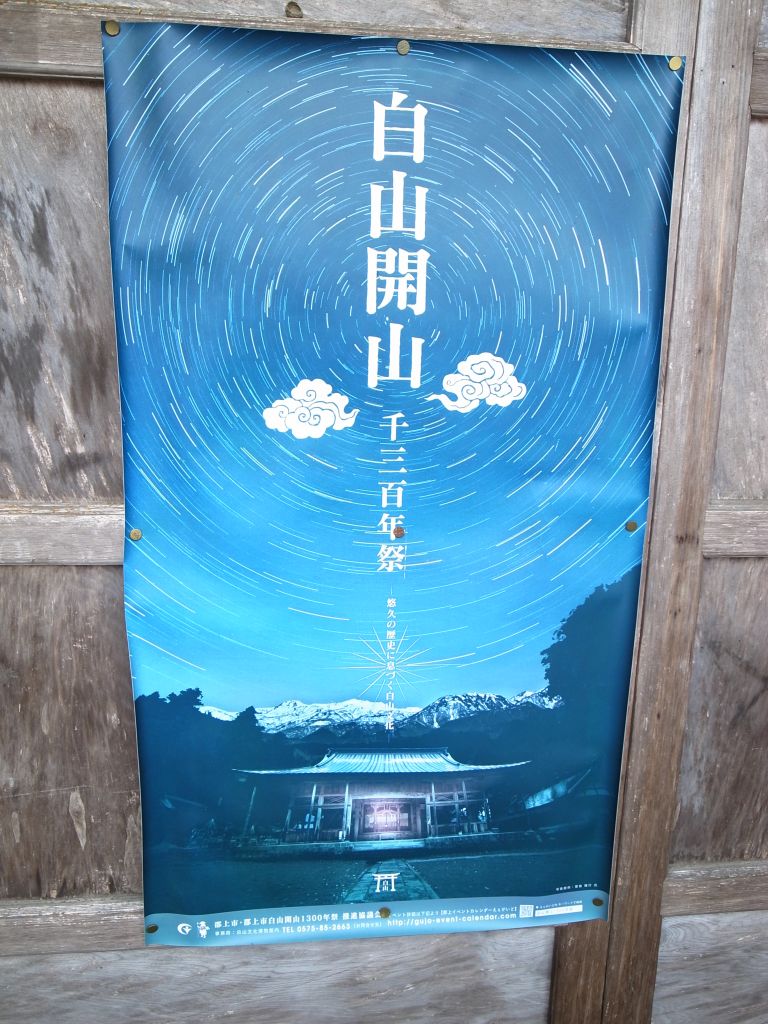 白山開山1300年の幟が立っている。なお、長滝白山神社境内には神宮寺長瀧寺があり、併せて美濃側における白山信仰の拠点となっている。