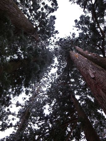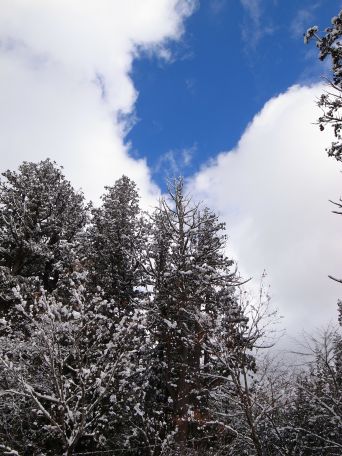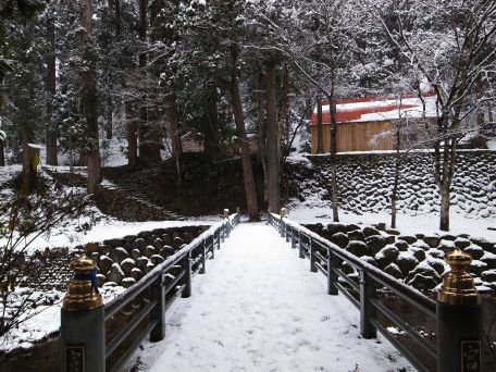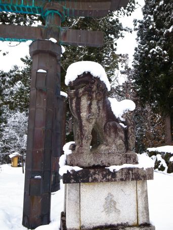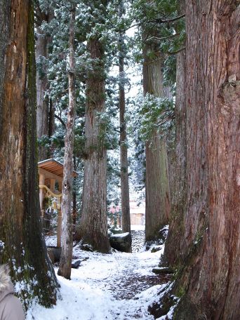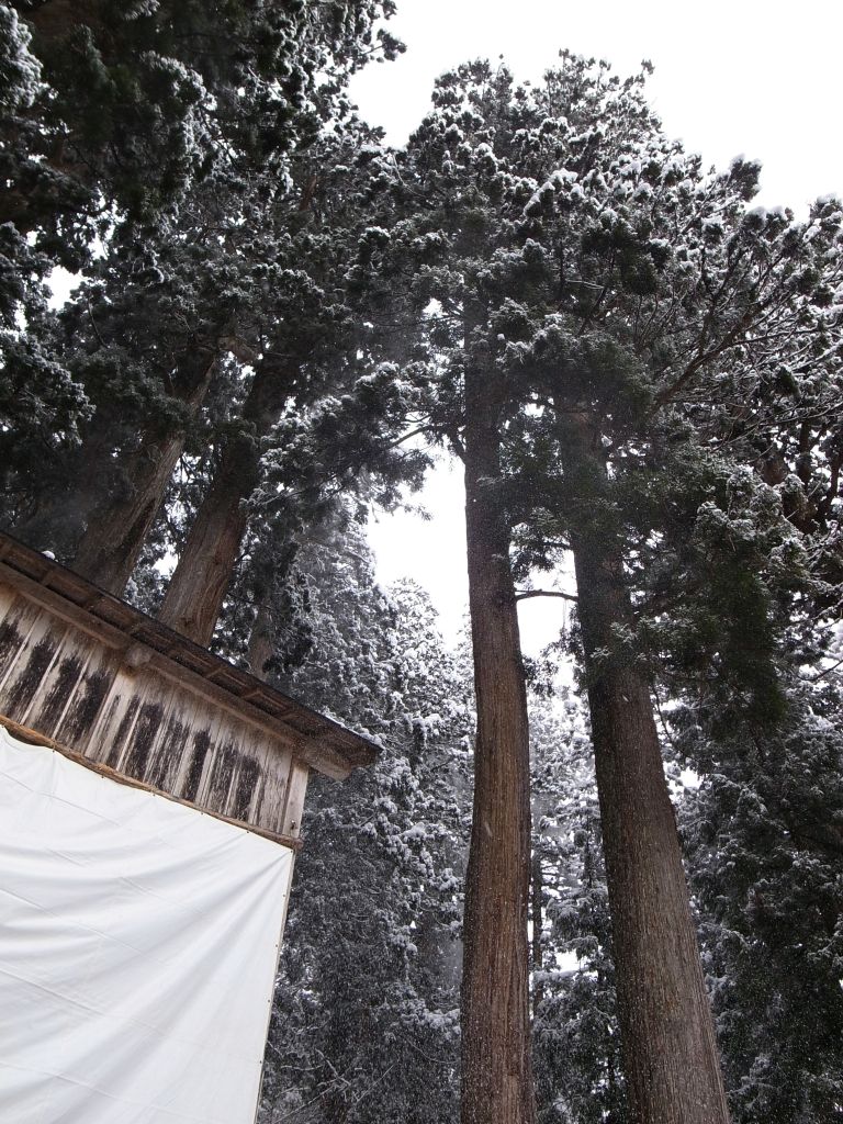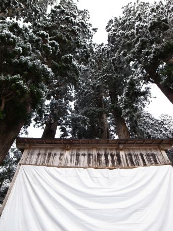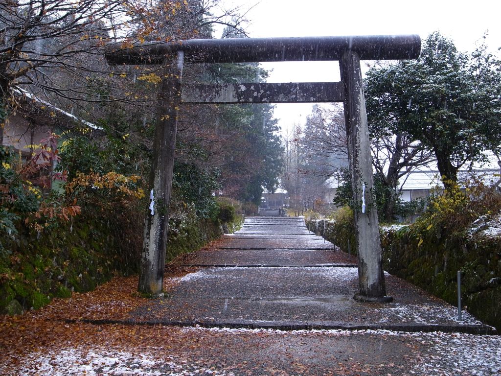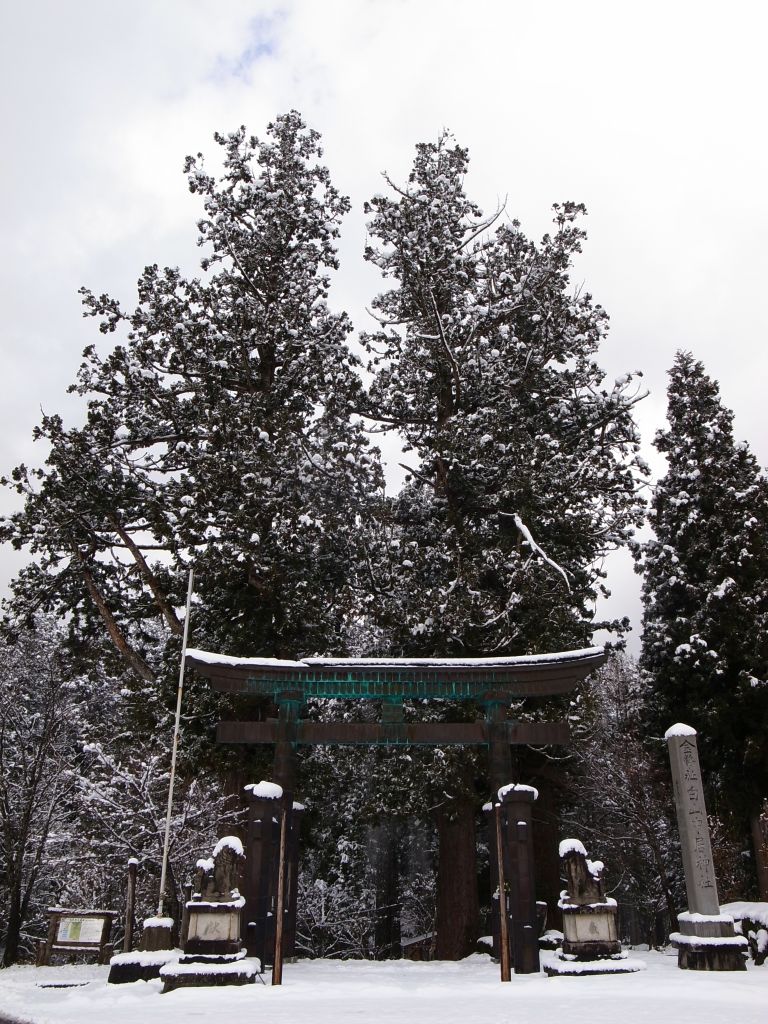 お参りのタイミングで、みぞれの合間に一瞬陽が射す。