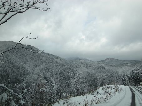 白山長瀧から石徹白(いとしろ)地区に向かう。だんだん雪が深くなってくる。