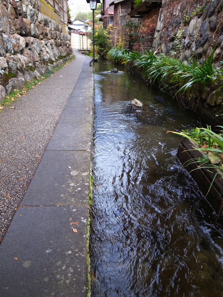 いがわこみち。江戸時代寛文年間にできたという用水。炊事や食器の洗い物にも使われた。今も生活に利用されており、住民によって大切に管理されている。