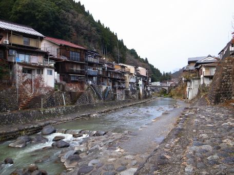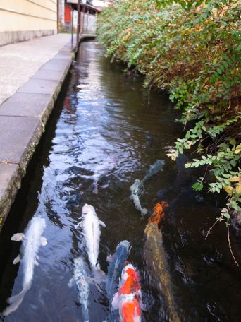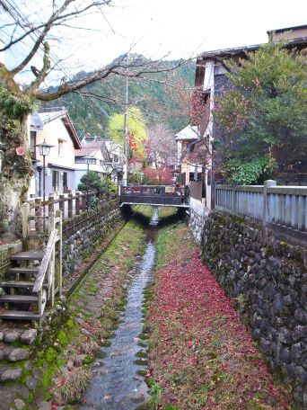 市内を流れる小駄良川。川辺まで家が迫っている。
