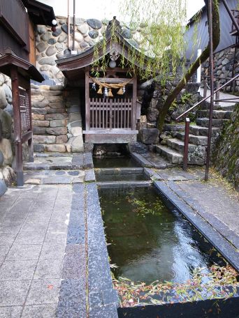 室町時代の連歌師宗祇ゆかりの宗祇水。白山の伏流水が湧く。こちらも、今も飲料水・生活用水として大切に使われているという。