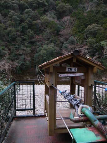 途中、「野猿(やえん)」を見かける。生き物の猿ではなく、手動のロープウェイである。吊り橋が掛けられるまでは十津川村内のあちこちで住民の交通手段として利用されていたらしい。
