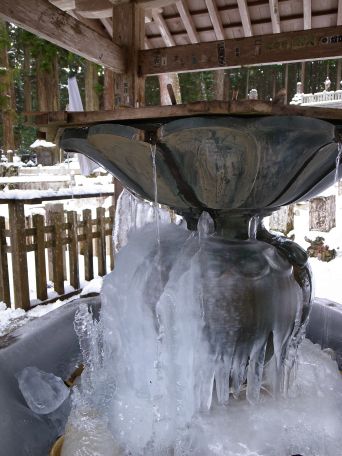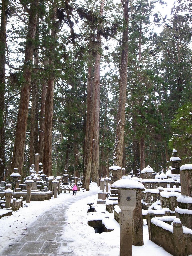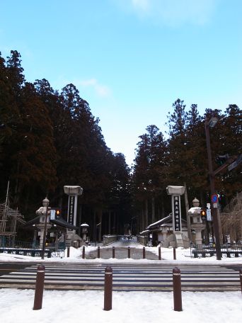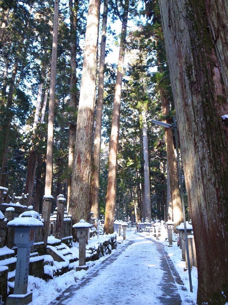 14:30過ぎ、高野山に到着。中の橋の駐車場に車をとめる。心配したほどは雪は多くなく、小春日和の良い天気。