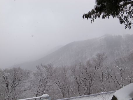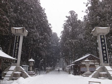立里から高野山に引き返す。高野山内も昨日の春の日差しとは打って変わって吹雪模様。