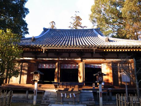 夕日射す若宮社・旧大御輪寺の観音堂。観音さんのお体は今は聖林寺に遷られたが、観音さんの心はまだここにおられるような気がする。