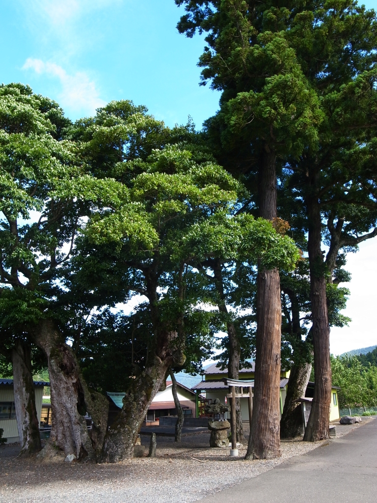 細道を進んで行くと、上野地区の入り口の辺りに、 これまでは気づかなかった鎮守の森のような木立があるのが眼に入る。 こちらもちょっと気になるが、まずは直売所に向かう。 直売所で子芋を買って随分サービスしてもらったりした後再び同じ道を戻り、 上野木立を訪れてみる。