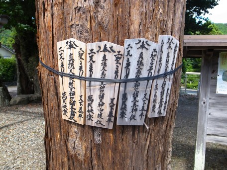 祠の前の大樹の幹には御祈祷札が括り付けてある。我々が護摩供や御祈祷で作る祈祷札と似ているが、