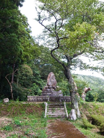 神社の周囲をひとしきり見て、鵜の瀬に向かいかける。 が、そこで南側にある山裾に石碑があるのに気づき、 どうしても気になるということで再び引き返す。