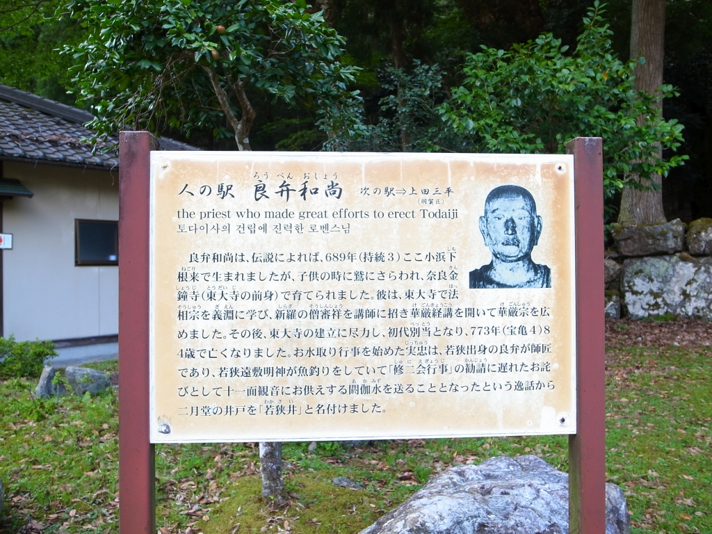 「良弁和尚は、伝説によれば、689年(持統3)ここ小浜下根来で生まれましたが、