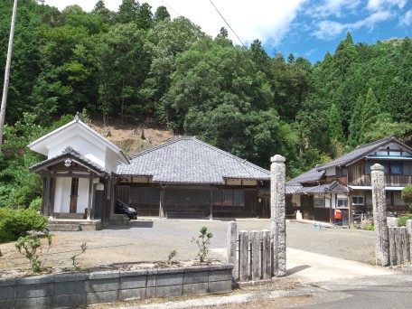 神社向かいの集会所。中をのぞくと、正面に神社かお寺のような厨子がある。