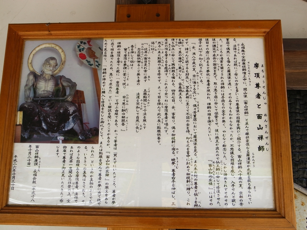 (中略)禅師の頭を摩でた故に「摩頂尊者」と呼ぶ由縁である。(後略)」