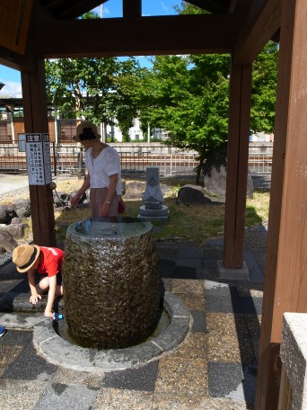 大野駅前にある「駅清水」。子供が水遊びをしていた。水が爽やか。