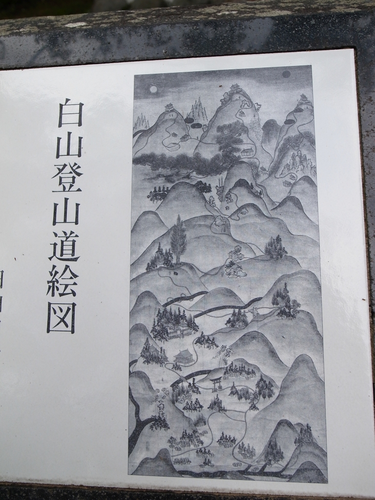 参道横の案内板。この白山中居神社から先はまさに登山道となり、白山の懐に入ってゆく。