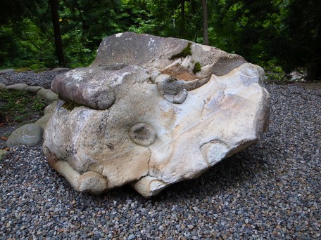 境内に無造作に置いてあった不思議な岩。火山活動でこういう構造ができたのだろうか?