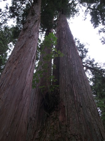 杉の大樹と一体化し、水を吸い上げ、宇宙に巡らす。
