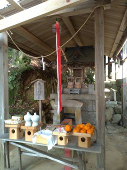 八嶋龍神さん、もう一柱の龍神さん、天之斑駒明神さん、金比羅さん、 不動明王さんとご挨拶して最後に二葉姫稲荷さん御宝前にてみなさんに向けて心経・立義分 (『大乗起信論』という経典の一章。大乗仏教の本質を簡潔に説く。 真言宗においては特に神明や天部の前でにお供えとして唱えるのが通例である。 神様方にも大乗仏教の徳を味わって頂くのがその趣旨と思われる)を上げる。 いつもは閉まったままの社務所も開いていて、 予め連絡を取っていた、いつも二葉姫稲荷さんをお守りされている知人にご挨拶。 いろいろ興味深いお話しを伺う。 この方もいわゆる神職ではなく一般の信者さんながらしっかりと神様と繋がっておられる方。 ついつい長話してしまう。最初は曇りがちだった天気も陽が射してきて正月とは思えない暖かさ。