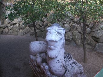 また朝熊山は古来より伊勢の鬼門を護る山と言われるが、 しかし地図を見ると内宮のほぼ東の方向に位置し、 個人的には鬼門(北東)を護ると言うには厳しいように思われる。 (まぁ、に東方から北方の間に位置すればそれはごく大まかに「鬼門」に位置すると 言えなくはないのかも知れないが。)