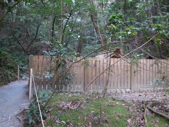 伊勢志摩スカイラインを東に抜け外宮へ。まず正宮にお参り。 いつもながら黄金の稲穂を満載した米蔵にしか見えない。続いていつものように多賀宮、風宮、 土宮とお参りするが、今回は多賀宮から風宮に向かう参道の左手に細道が続いているのが目に入る。 これまでも目には入っていたのかも知れないがその先に行ったことはなかった。 今回初めて気になって進んでみると、その先には井戸の上に立てられた小さな祠が見えてくる。 外宮の所管社のひとつ、下御井神社であった。 お祭りにお供えするお水を頂く上御井神社に不都合があった場合はこちらでお水を頂くとのこと。 ちなみに上御井神社は一般に公開されていない。このタイミングで何度もお参りしている外宮で初めて 水の神社に気がついたことは興味深い。ここが水の道を外宮ひいては伊勢神宮全体に繋ぐ「コネクタ」 かと思われた。