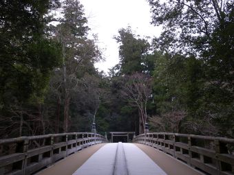 <風日祈宮の橋。帰り道、いつものようにゆらゆらする。あれは何なのか。>