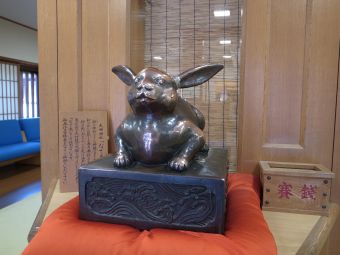<大神神社の御神縁の日である卯の日にちなむ撫でウサギ。かわいらしい。>