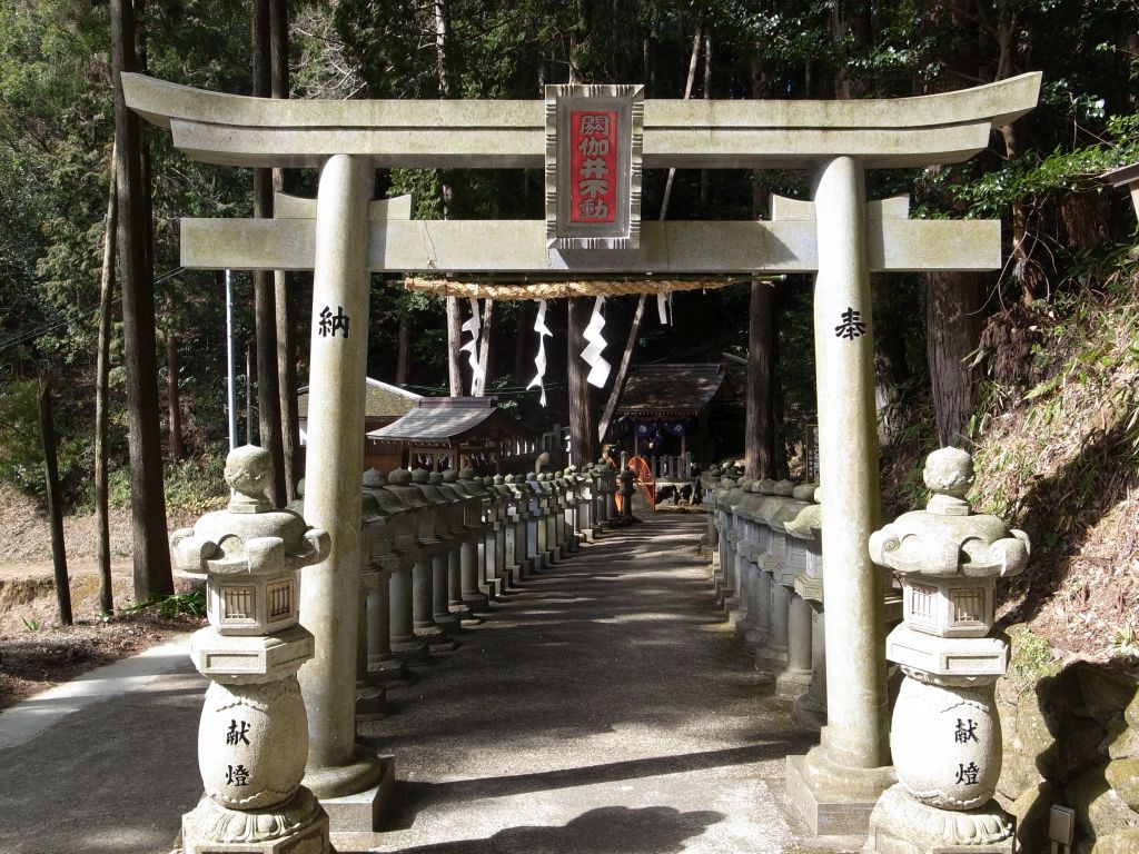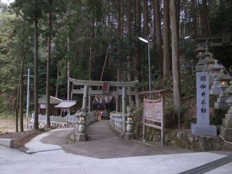 檜原神社から山中に入り車で約15分、笠山荒神社に到着。予め地図で確認し、車で行きやすい裏参道入口の広い駐車場側に向かうつもりだったにもかかわらず、なぜか表参道側に着いてしまう。小さいながらも駐車スペースはあったので一安心する。