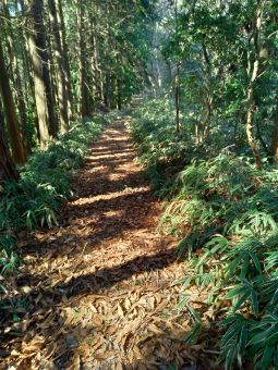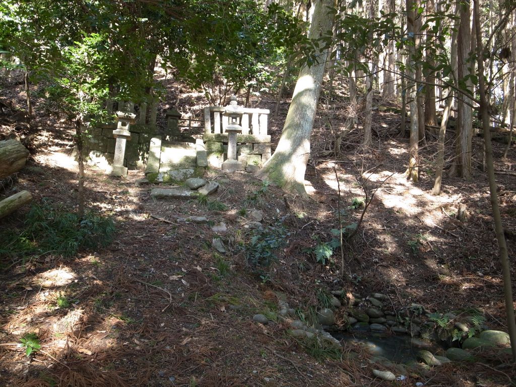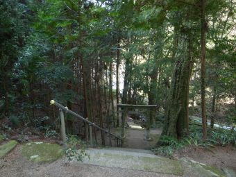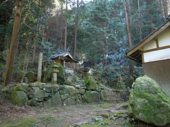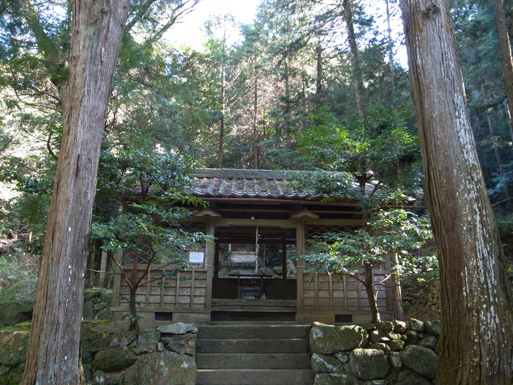 <山道を20分ほど歩き、龍王神社にたどり着く。山中にもかかわらず、人が手入れに通っているようだ。