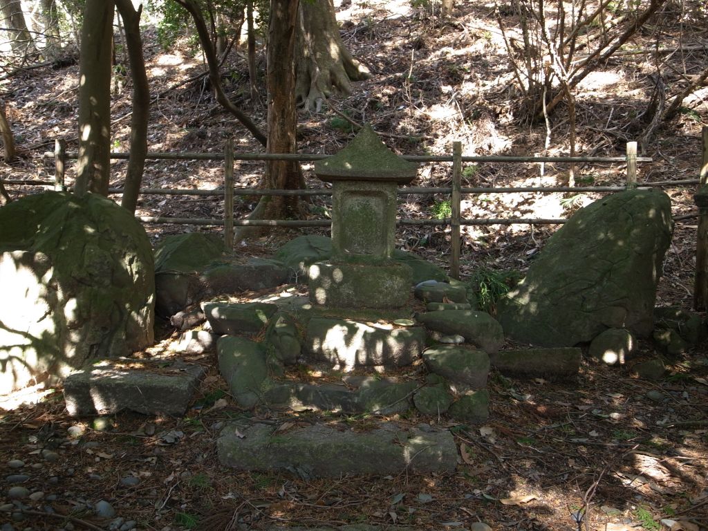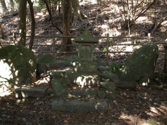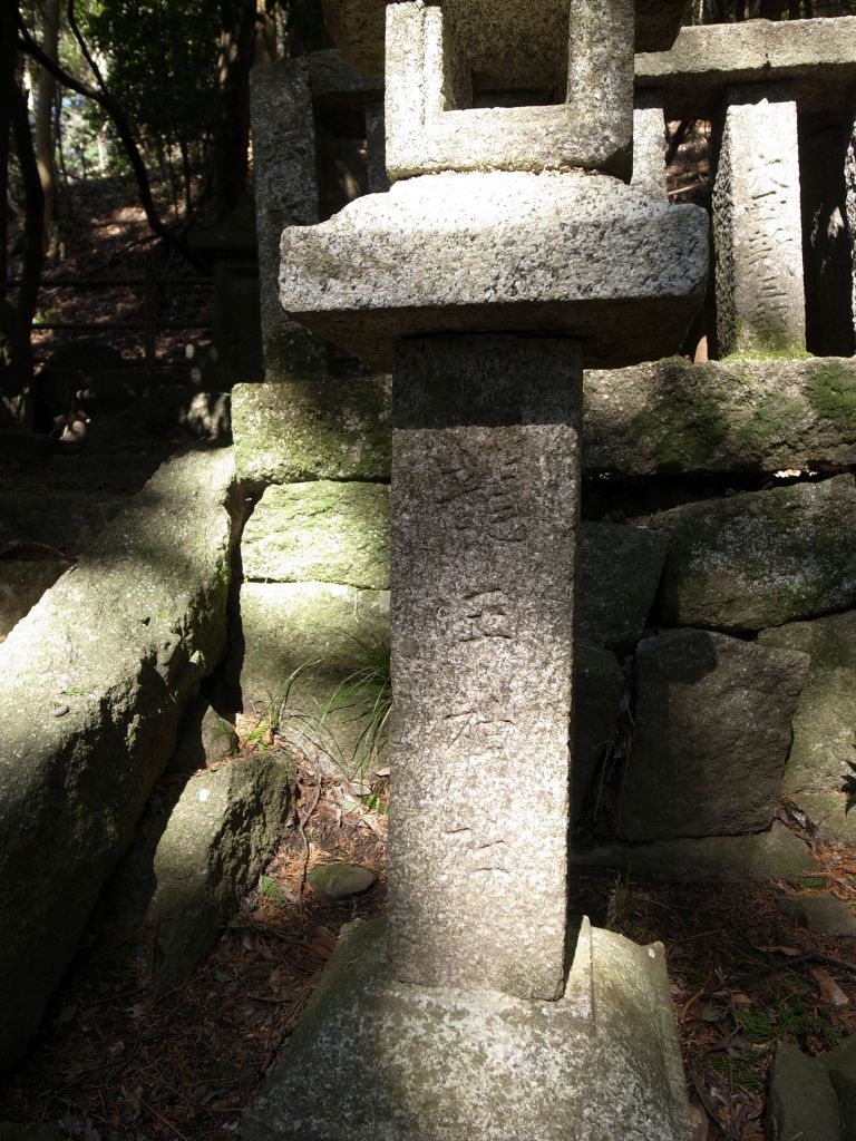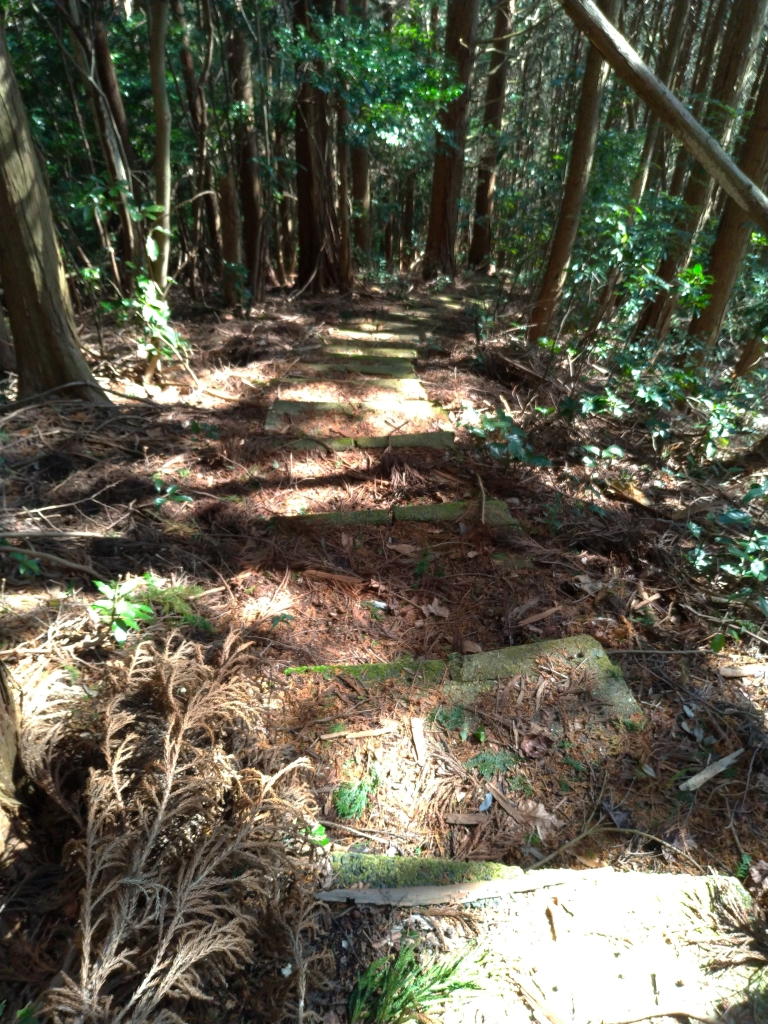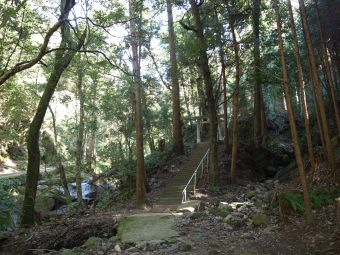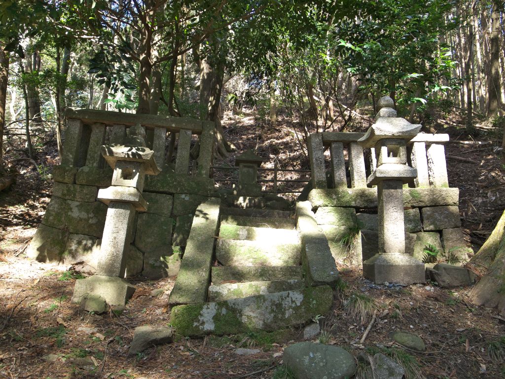 <徒歩でしか行けない山中にもかかわらず、立派な石組みの玉垣と石段がある。>