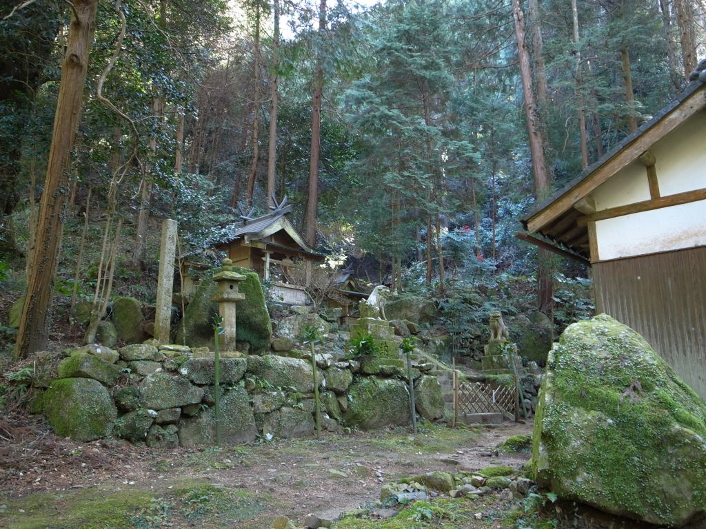 やはり集落から直接登る道があるようだ。そこで、再度長滝町の集落に戻り、 手元の地形図でおおよその当たりをつけて探索するとそれらしい登り口を見つける。 丁度民家から出て来られたお婆さんに聞いてみるとやはりここで間違いないらしい。 ただし、ここから登ると道が険しいから、車があるなら峠を越えて林道から回った方が楽だろうと教えて下さる。 また、この神社はとても霊験あらたかな神様だということも仰っていた。確かにそう言われるだけの力があるように思われる。