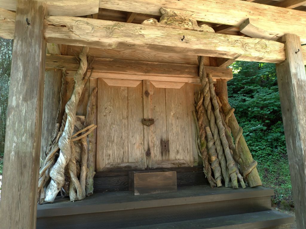 金剛童子堂では、左ねじの木を供えたり、