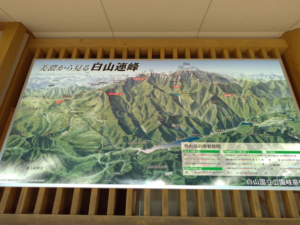 境内に掲示されている「美濃から見る白山連峰」の図。