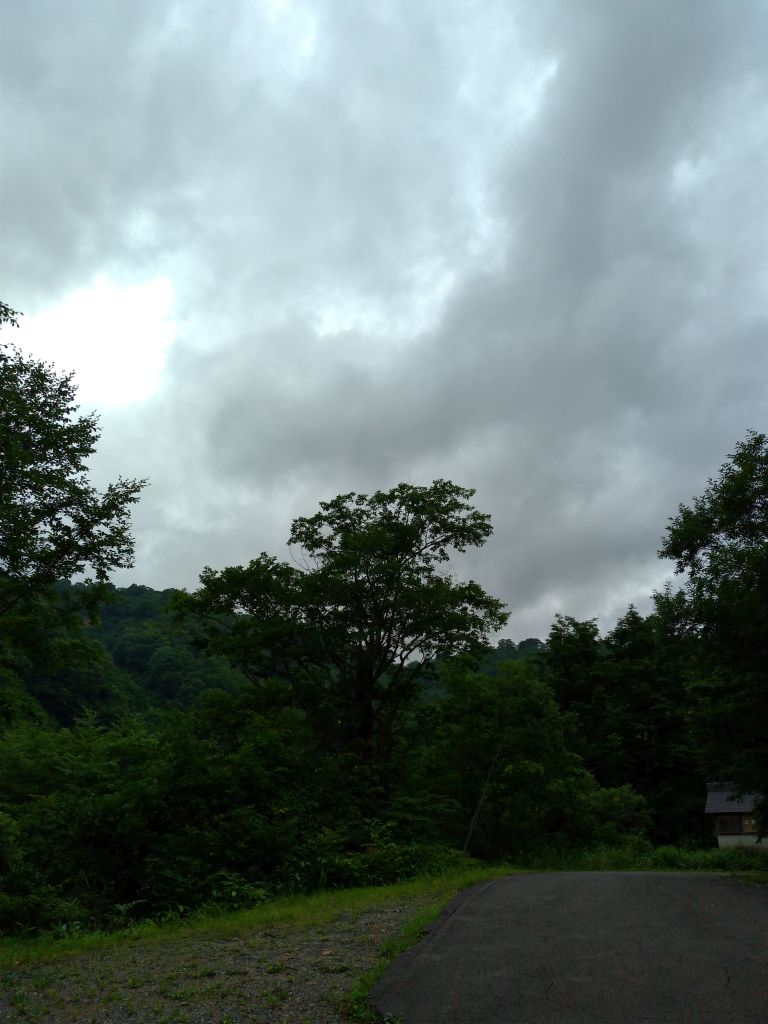 山道の帰路は雨がぱらつくが、平地に戻るとまた晴れてくる。