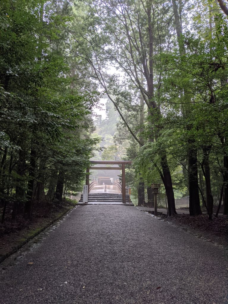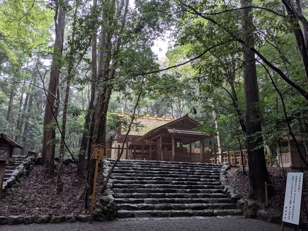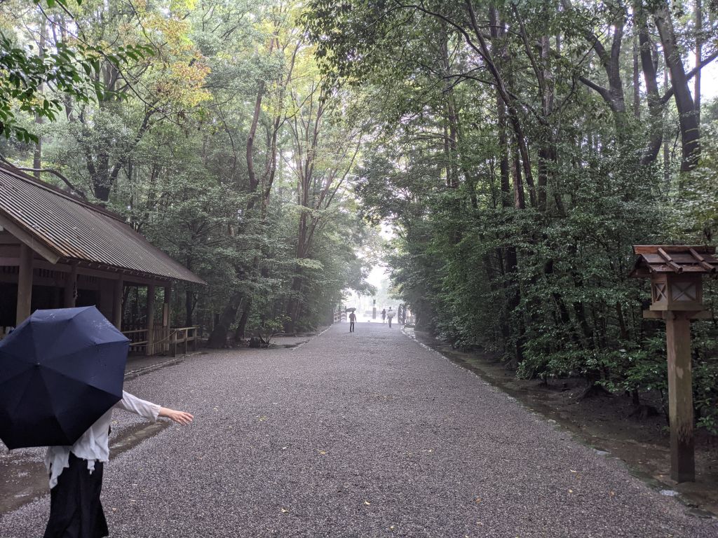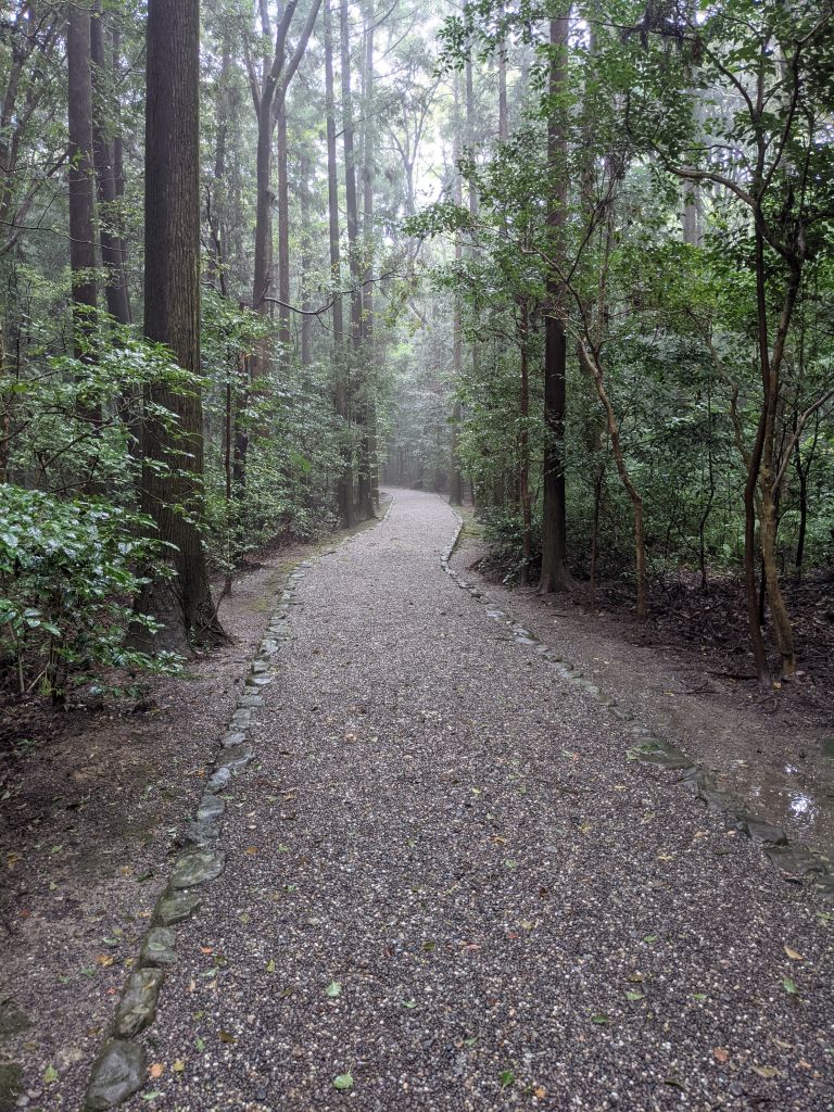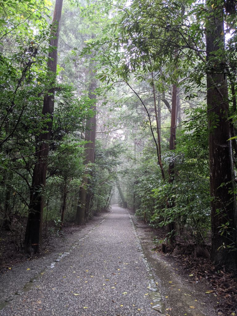 境内は静かに降る雨の中瑞々しい。月夜見宮は外宮・内宮の別宮の中でも最も好きな場所の一つ。