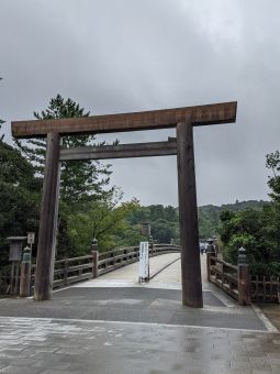 外宮のお参り終えて車で内宮へ。門前の駐車場はこちらも軒並み閉鎖されているため神宮会館横の 駐車場に止め、おかげ横丁を抜けて宇治橋へ向かう。